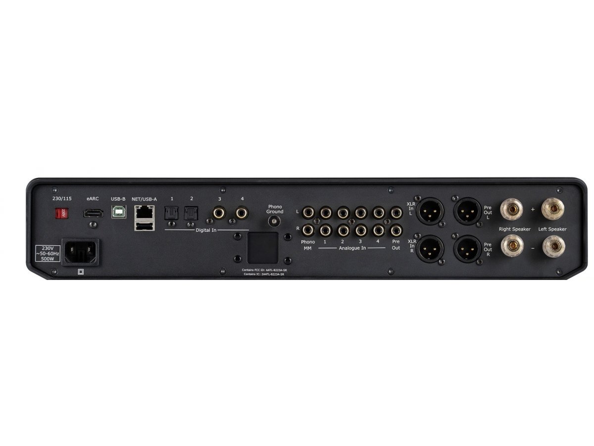 Connectivité Ultra-Complète : Entrées HDMI eARC pour la TV, Phono MM/MC, USB-B asynchrone, ainsi que des entrées et sorties symétriques XLR.