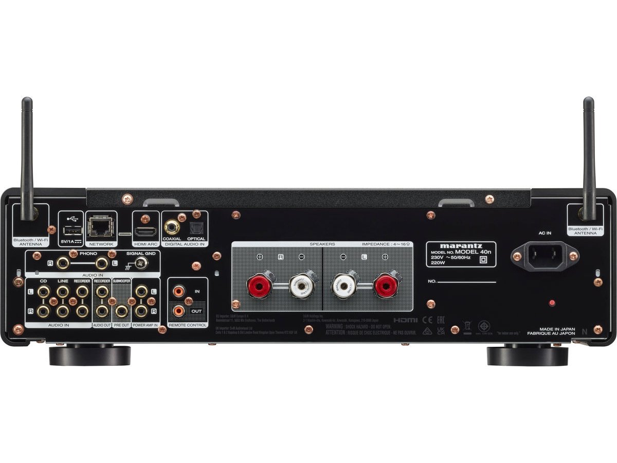 L'amplificateur / réseau Marantz Model 40N offre une connectivité avancée pour répondre à tous vos besoins audio. Profitez de 3 entrées ligne stéréo, d'une entrée phono MM pour les vinyles, de ports S/PDIF coaxial et optique pour une transmission audio numérique de haute qualité, d'une entrée USB audio pour la lecture directe de fichiers audio, et bien plus encore. Le port HDMI ARC vous permet de profiter de l'audio de votre téléviseur avec une qualité sonore exceptionnelle.